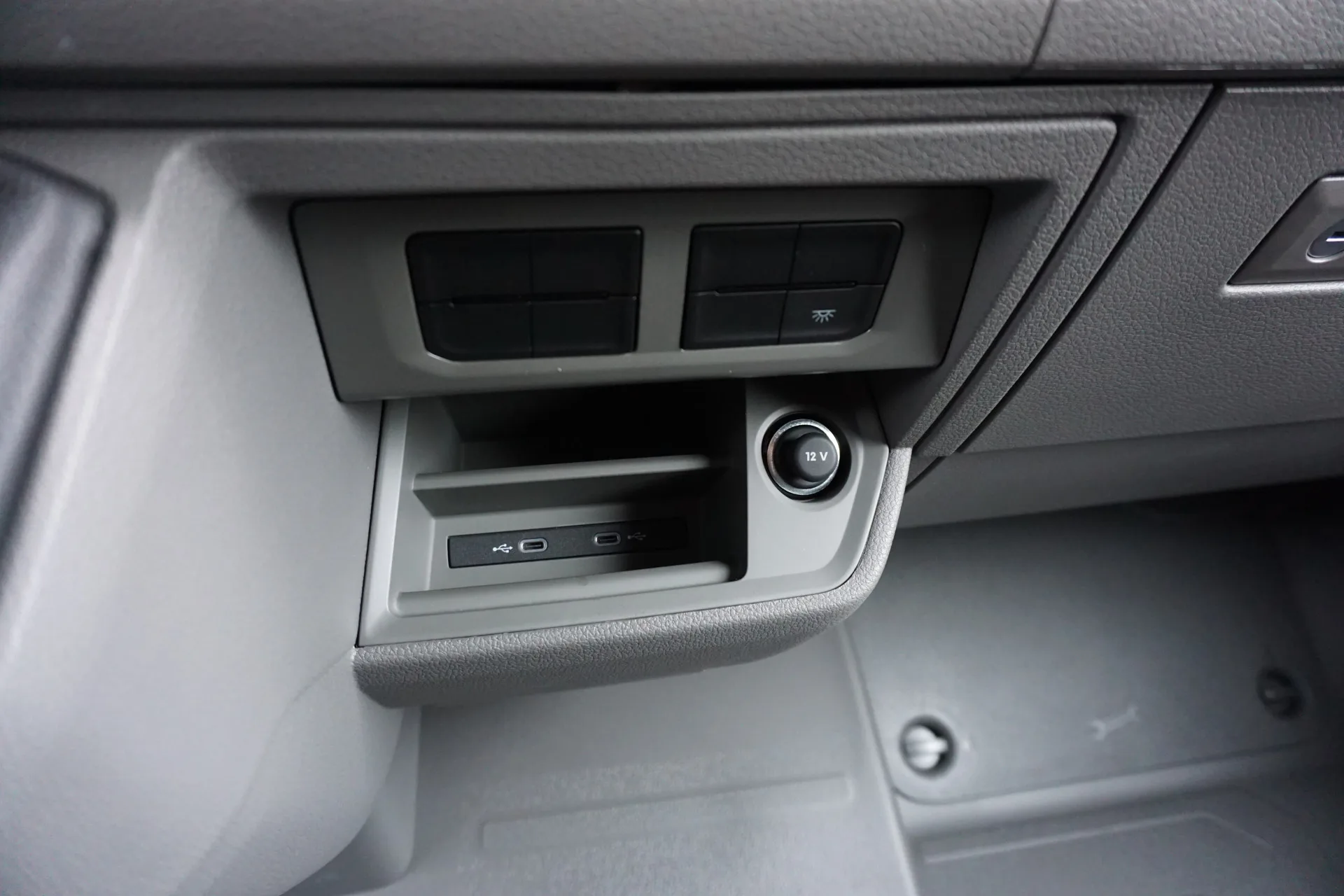 • Tweepersoons bijrijdersbank rechts, met opbergvak en neerklapbare middelste rugleuning